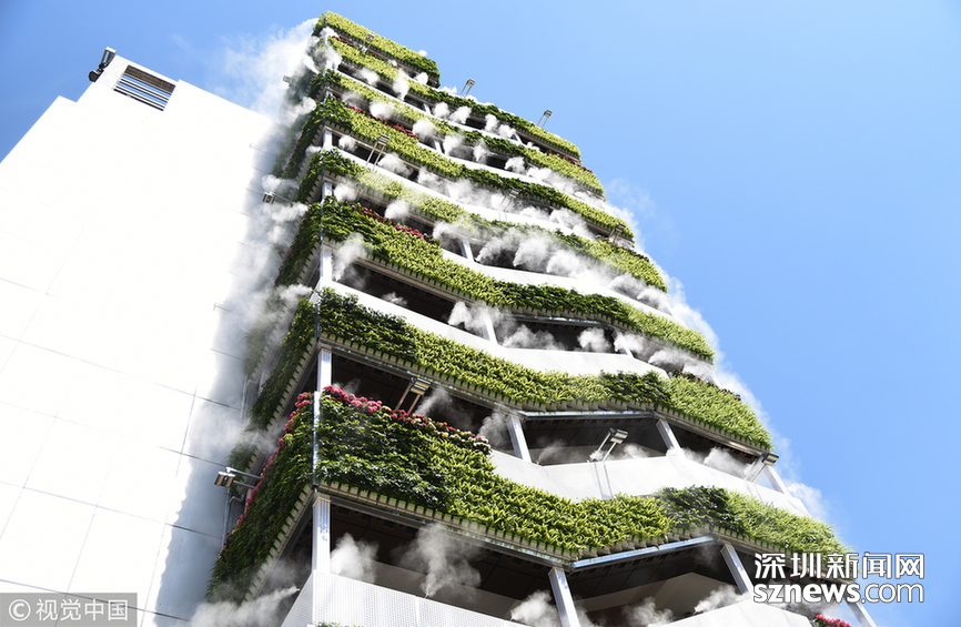 “仙氣飄飄”、“西安天氣有多熱,房子都冒煙了”,這是一段抖音小視頻里網(wǎng)友的評(píng)論留言。視頻中一棟10層高的樓外側(cè)樓梯處掛滿了綠植,同時(shí)綠植上方還有噴霧。藍(lán)藍(lán)的天空當(dāng)做背景,引來不少人上前拍照,配著背景音樂的確讓人感覺清涼無比。 |