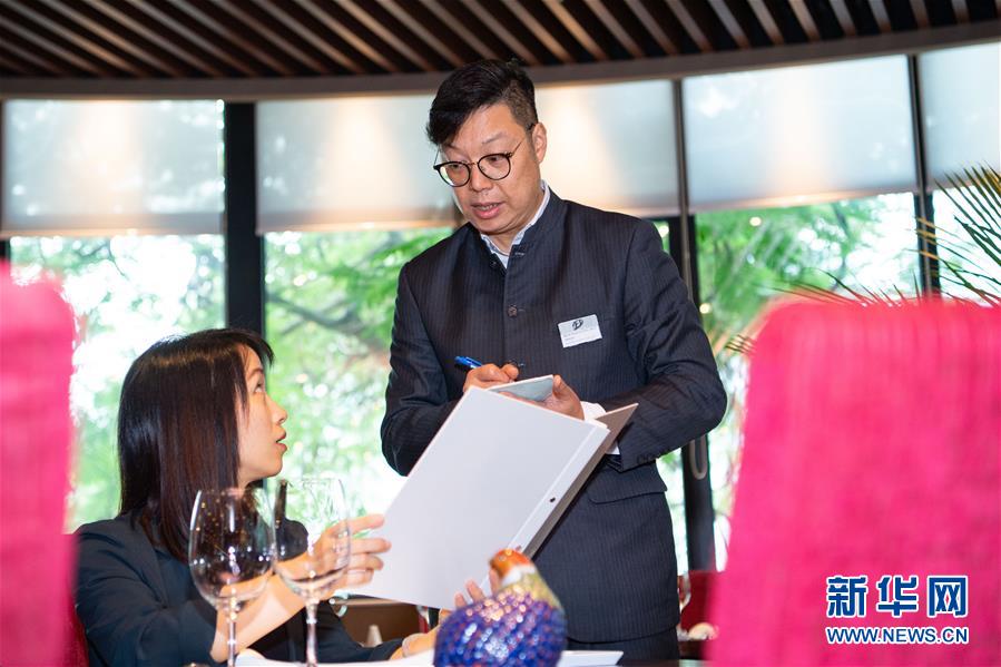 11月26日,澳門旅游學(xué)院教學(xué)餐廳的曾日升在餐廳內(nèi)協(xié)助顧客點菜,他已經(jīng)工作了22年,主要負(fù)責(zé)處理餐廳事項及教導(dǎo)學(xué)生。 新華社記者 張金加 攝
