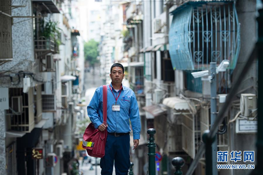 12月5日,澳門郵電局郵差劉振驅(qū)去投送信件,他已經(jīng)工作了4年。 新華社記者 張金加 攝