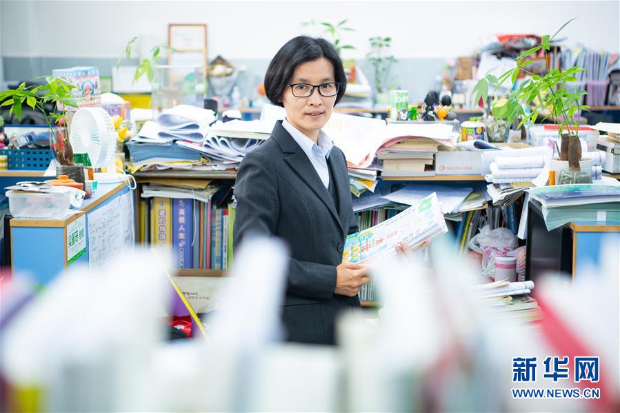 11月26日,澳門培華中學(xué)教師袁金淑在辦公室內(nèi),她已經(jīng)工作了20年,主要負(fù)責(zé)數(shù)學(xué)及公民教育。 新華社記者 張金加 攝