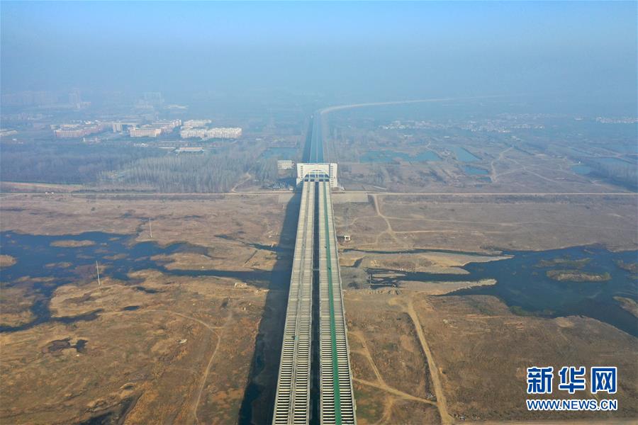 這是12月9日無人機拍攝的南水北調中線總干渠沙河渡槽工程。新華社記者馮大鵬攝