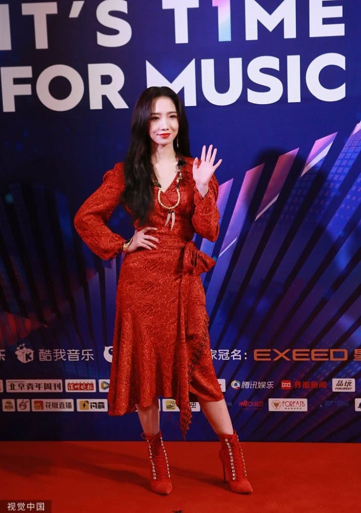 孟美岐身穿大紅色長裙搭配波浪卷發(fā),大走港風美艷動人。