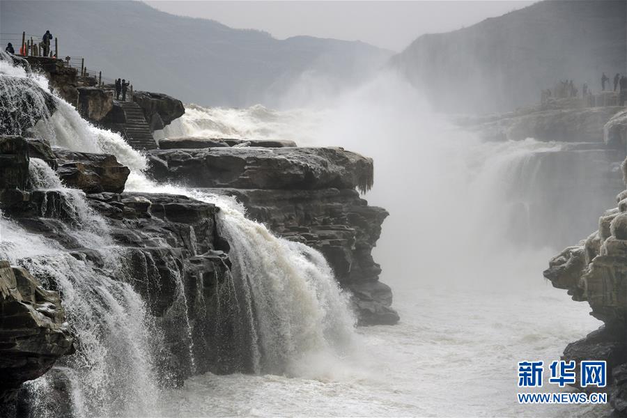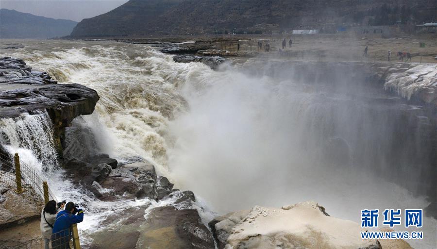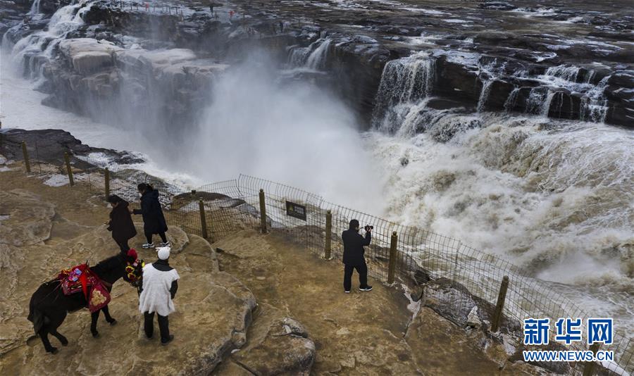 12月14日,游人在壺口瀑布景區(qū)游玩。 新華社記者 陶明 攝