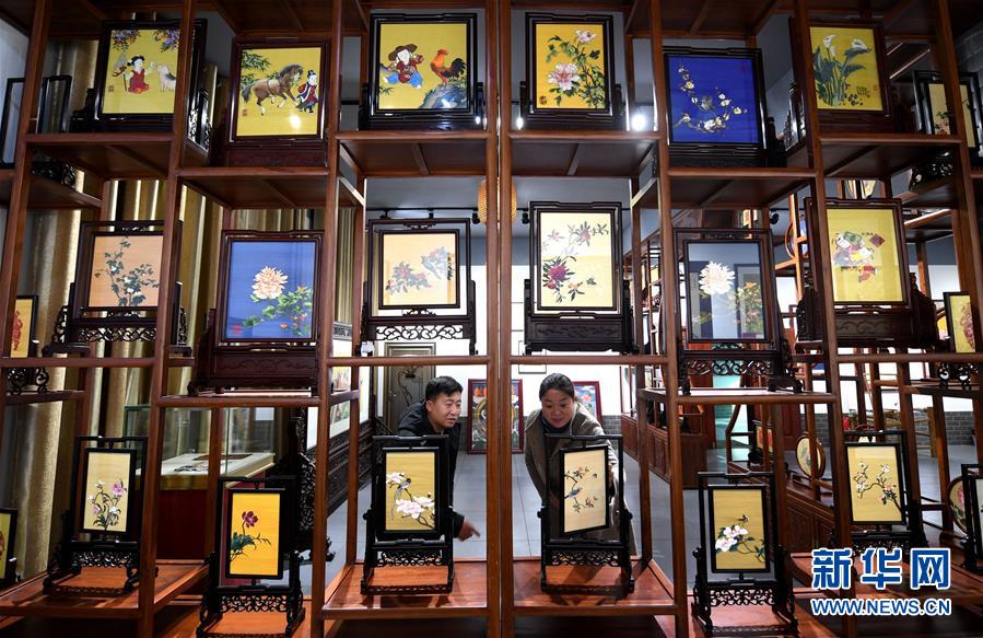 12月14日,在河北定州緙絲傳習(xí)基地,工作人員(右)在給游客介紹緙絲作品。定州緙絲是一種以蠶絲為原料,采用“通經(jīng)斷緯”技法織成的雙面平紋織物,工藝繁雜,經(jīng)得起摸、擦、揉、搓、洗,有著“千年不壞的藝術(shù)織品”之譽(yù),2013年被列入河北省第五批非物質(zhì)文化遺產(chǎn)名錄。近年來,河北定州積極推介緙絲,促進(jìn)緙絲產(chǎn)業(yè)發(fā)展。 新華社記者 王曉 攝