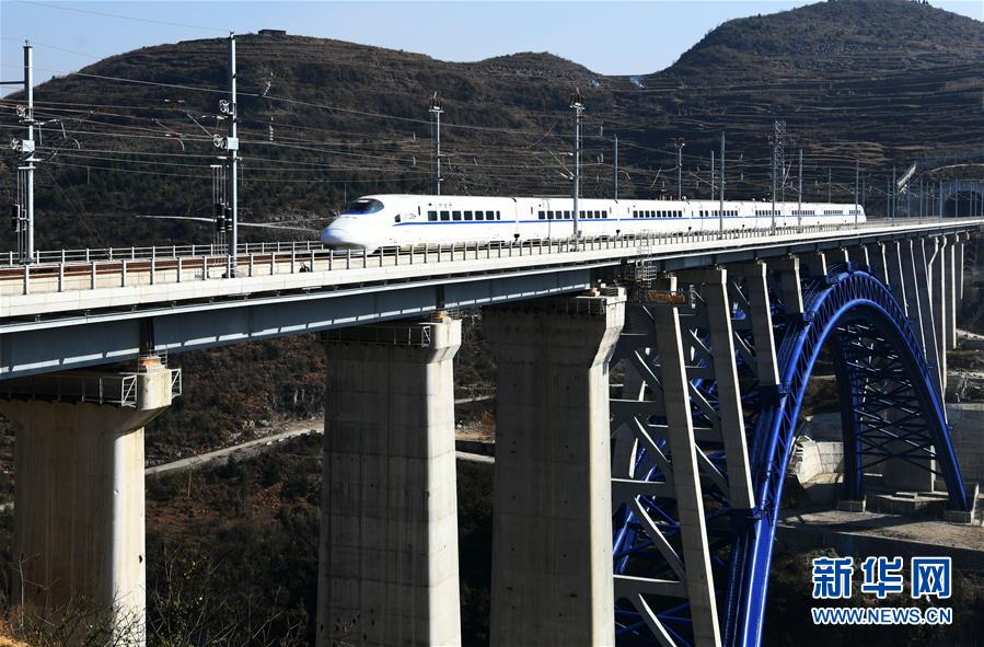 12月16日,一列動車組列車從成貴高鐵西溪河大橋上駛過。新華社記者楊文斌攝