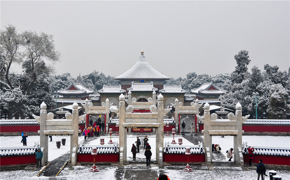 2019年11月30日,北京,初雪過后,天壇公園銀裝素裹,白雪古建相互映襯,景色迷人。時永平/千龍圖像/視覺中國