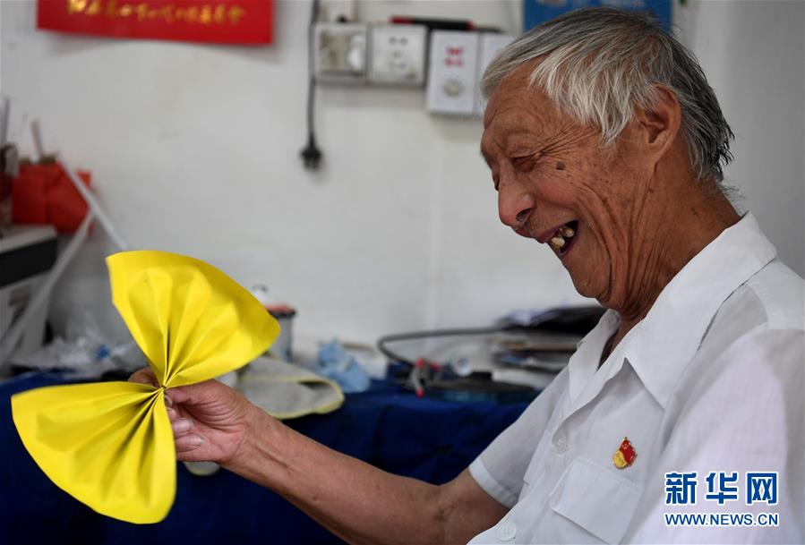 7月31日,葉連平在“留守未成年人之家”教室里欣賞學(xué)生剛剛送給自己的折紙禮物。92歲的退休教師葉連平生活在安徽省和縣烏江鎮(zhèn)卜陳村,村里的年輕人大多外出工作,留下的多是老人和孩子,家長普遍沒有能力輔導(dǎo)孩子學(xué)習(xí)。2000年,原本是老師的葉連平?jīng)Q定創(chuàng)辦“留守未成年人之家”,為孩子們免費(fèi)補(bǔ)習(xí)英語。19年來,葉連平幫助過的孩子超過1000名。新華社記者劉軍喜攝