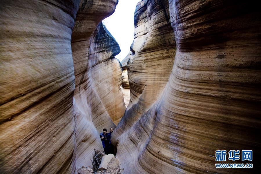 12月17日,游人在志丹縣雙河鎮(zhèn)毛項(xiàng)峽谷內(nèi)游覽。毛項(xiàng)峽谷位于陜西省延安市志丹縣雙河鎮(zhèn)毛項(xiàng)村,峽谷全長(zhǎng)12公里,分為9段,曲折綿延,谷內(nèi)石壁凹凸不平,其中最窄處只能容一人側(cè)身通過(guò),堪稱黃土高原上的自然奇觀。新華社記者陶明攝