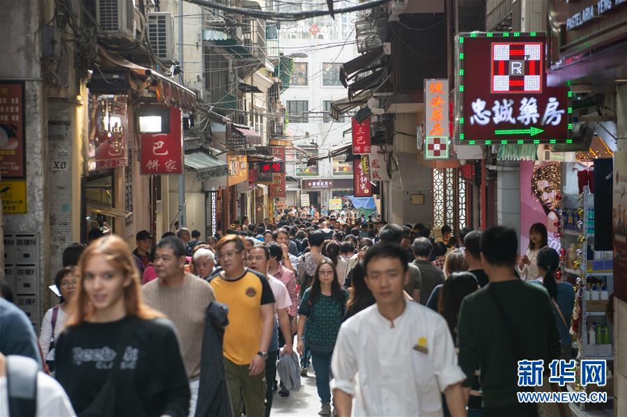 12月17日,澳門大三巴斜巷游人如織。新華社記者杜宇攝