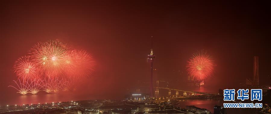 12月22日,煙花在澳門上空綻放。當(dāng)晚,澳門與珠海首次聯(lián)合舉行煙花匯演,慶祝澳門回歸祖國20周年。新華社記者呂小煒攝