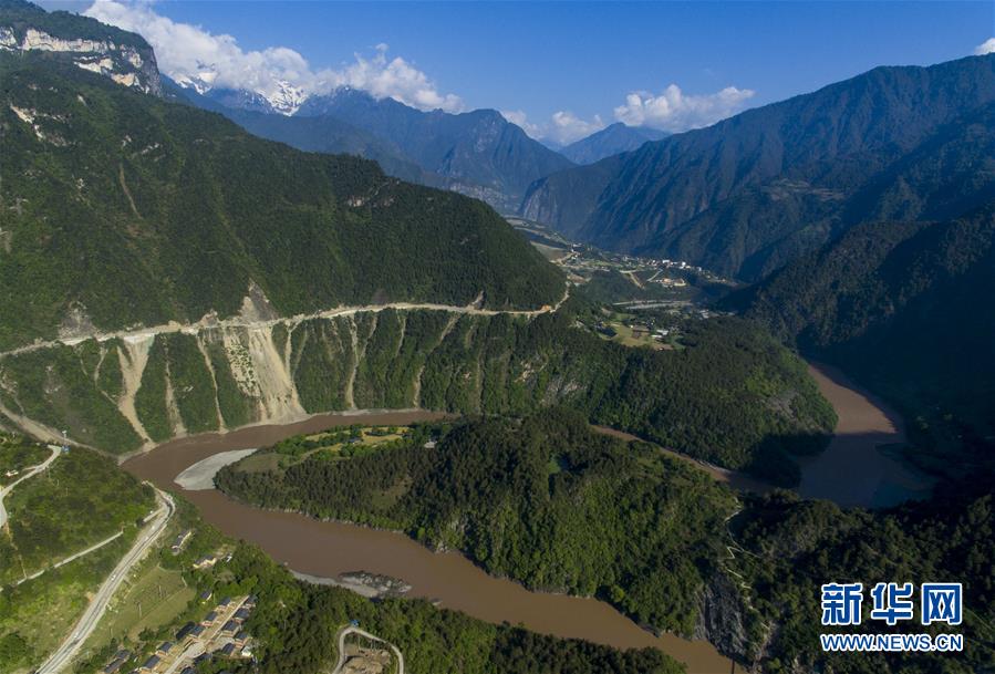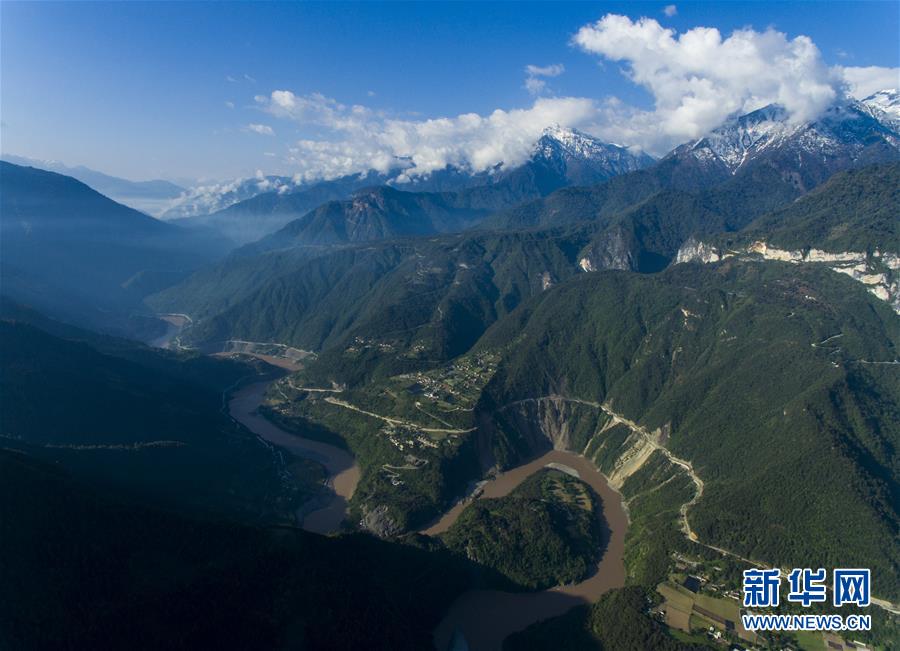這是4月27日在云南省貢山獨(dú)龍族怒族自治縣丙中洛鎮(zhèn)拍攝的“怒江第一灣”(無(wú)人機(jī)拍攝)。怒江自青藏高原一路奔騰向南流至云南省貢山獨(dú)龍族怒族自治縣丙中洛鎮(zhèn),高黎貢山與碧羅雪山夾江而立,江水順山勢(shì)急轉(zhuǎn)形成了一個(gè)氣勢(shì)磅礴的半圓形大灣,被稱為“怒江第一灣”。新華社記者江文耀攝