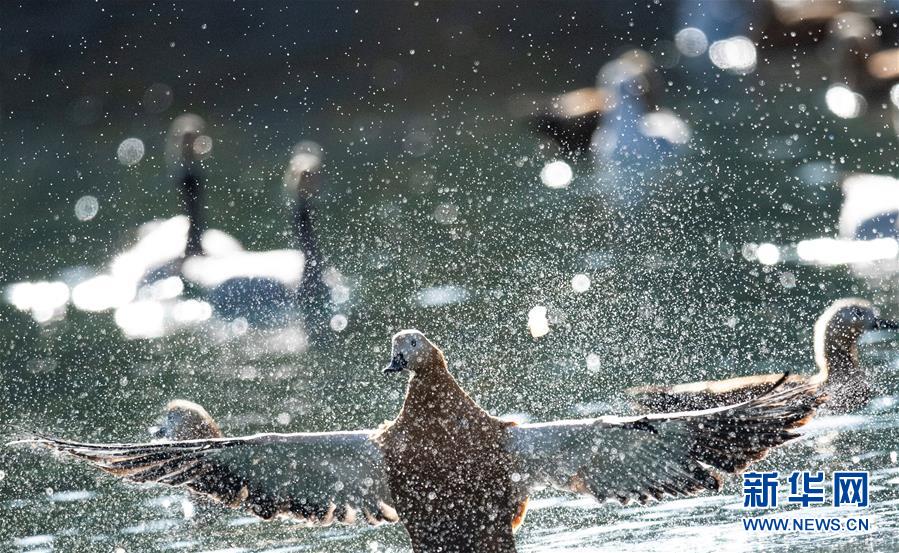 11月21日,候鳥在拉薩龍王潭公園水中嬉戲。新華社記者普布扎西攝
