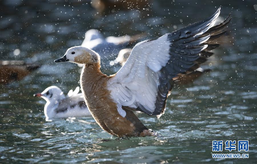 11月21日,候鳥在拉薩龍王潭公園水中嬉戲。新華社記者普布扎西攝