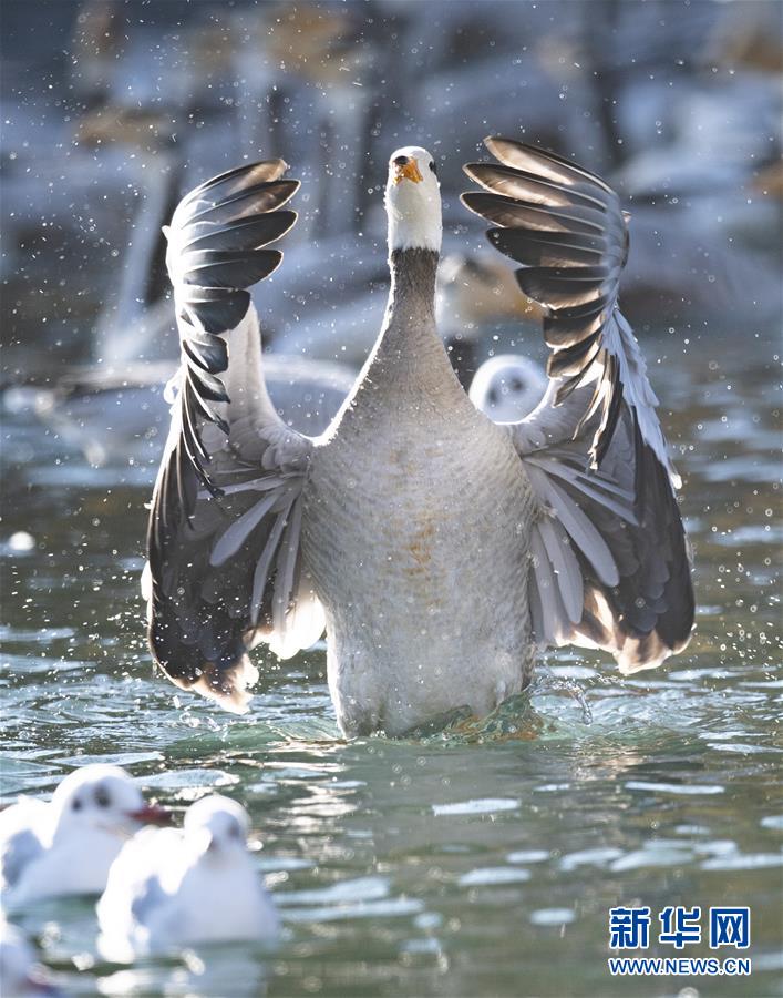 11月21日,候鳥在拉薩龍王潭公園水中嬉戲。新華社記者普布扎西攝