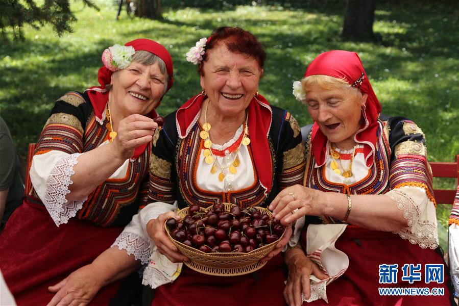 2019年6月22日,在保加利亞丘斯滕迪爾的櫻桃節(jié)上,果農(nóng)向游人展示櫻桃。丘斯滕迪爾位于保加利亞西部,距首都索非亞約100公里,是保加利亞櫻桃主產(chǎn)地之一,當(dāng)?shù)禺a(chǎn)的櫻桃以顆粒飽滿、甜度高、品種多且口感好而聞名。 新華社記者 戰(zhàn)小漪 攝