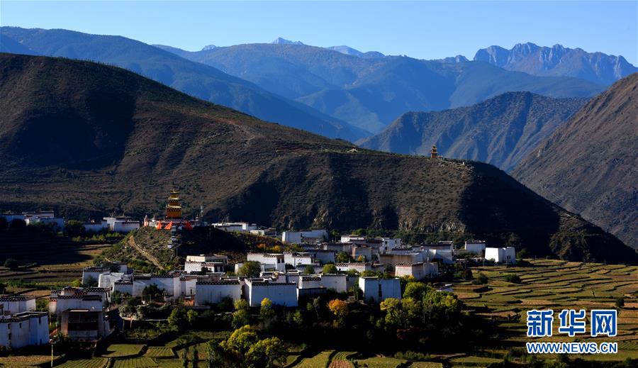 川藏線四川甘孜縣境內(nèi)的雪山和民居(11月3日攝)。新華社記者陳天湖攝