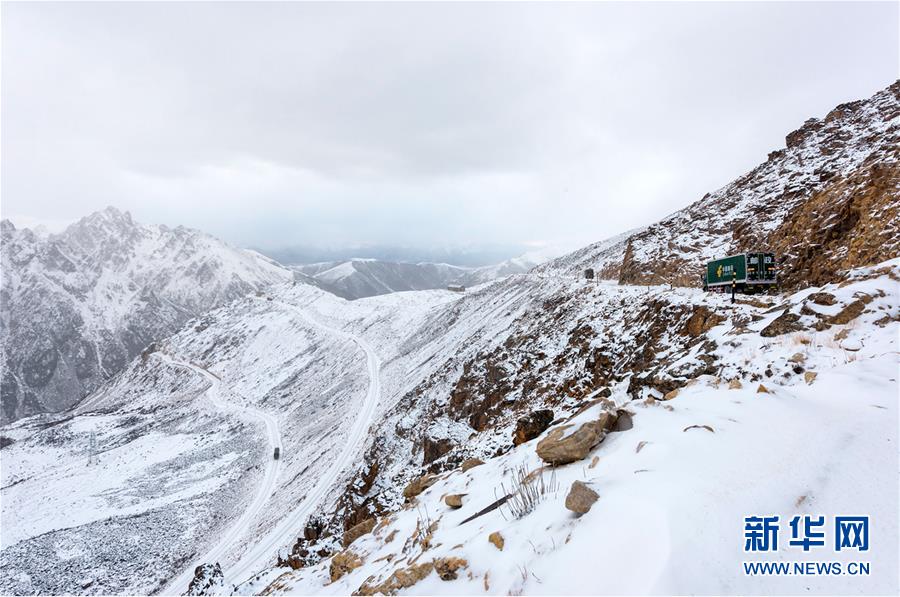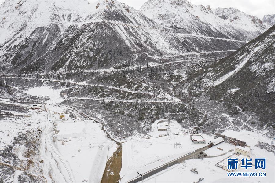 這是318國道剪子彎山段,大雪過后銀裝素裹(10月17日無人機拍攝)。新華社記者江宏景攝