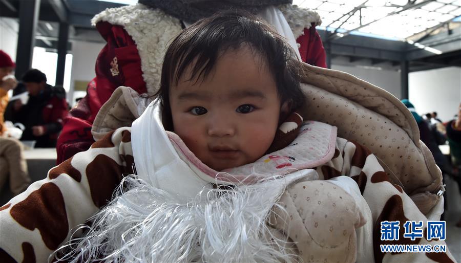 12月23日,在西藏那曲市雙湖縣出生的7個月大的娟安達(dá)瓦在母親懷里。新華社記者覺果攝