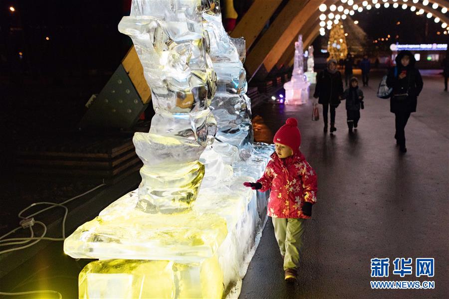 12月24日,在俄羅斯首都莫斯科,小朋友參觀冰雕藝術(shù)展。 哈爾濱冰雕藝術(shù)展24日在莫斯科開幕,現(xiàn)場(chǎng)展出了哈爾濱大劇院、防洪紀(jì)念塔以及莫斯科紅場(chǎng)建筑群等惟妙惟肖的冰雕作品,吸引眾多游客駐足拍照。 參加本次冰雕藝術(shù)展的十名冰雕師提前抵達(dá)莫斯科,以新中國(guó)成立70周年、中俄建交70周年、“一帶一路”倡議等為主題,為莫斯科民眾奉上了精美的新年禮物。 新華社記者 白雪騏 攝