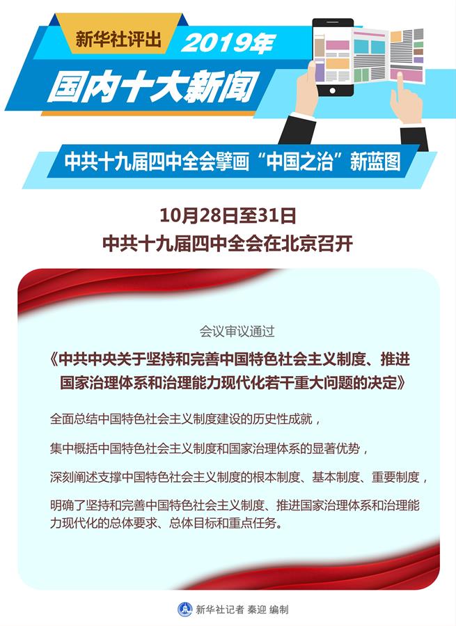 圖表:新華社評出2019年國內(nèi)十大新聞 新華社記者 陳聰穎 編制