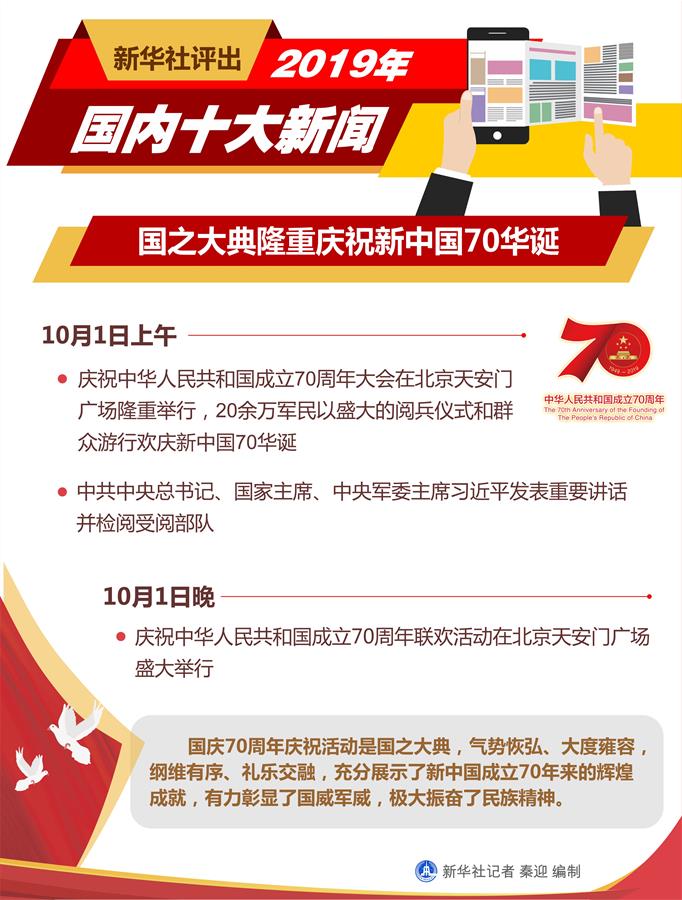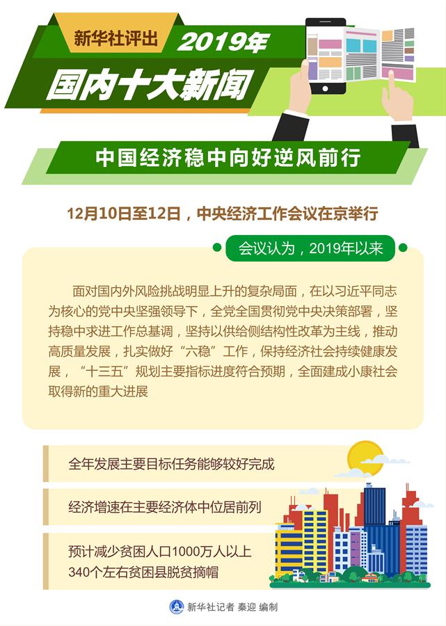 圖表:新華社評出2019年國內(nèi)十大新聞 新華社記者 秦迎 編制