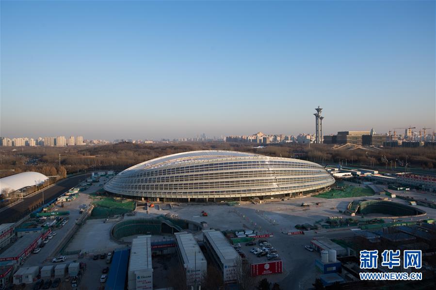 這是12月31日拍攝的實現封頂封圍的國家速滑館。新華社記者鞠煥宗攝