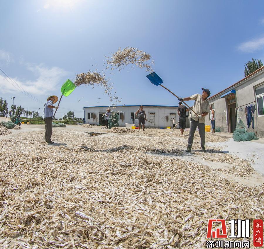 岸上,家家戶戶都在忙著晾曬剛捕撈上來(lái)的毛刀魚、小白魚和武昌魚。