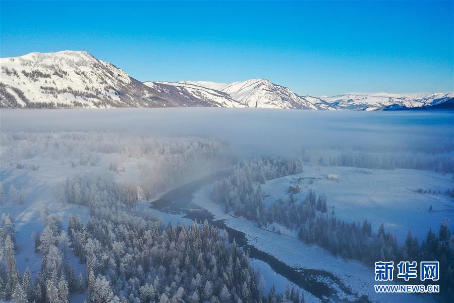 這是1月3日拍攝的晨霧下的喀納斯河(無人機(jī)照片)。新華社記者宋彥樺攝