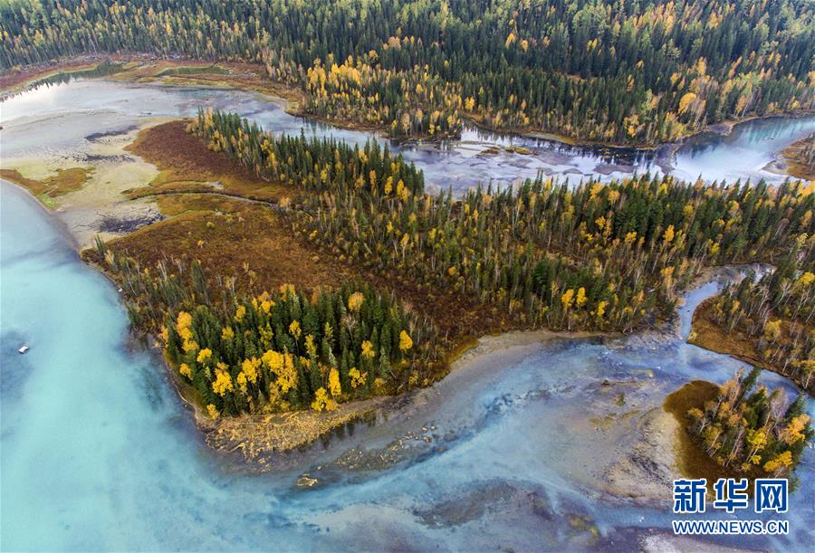 9月25日無人機(jī)拍攝的喀納斯景區(qū)風(fēng)光。新華社記者王菲攝