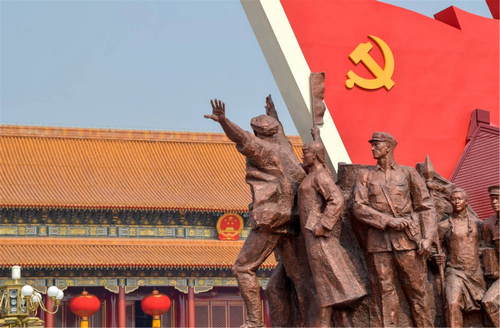 2019年10月1日,慶祝中華人民共和國成立70周年大會在北京天安門廣場隆重舉行。這是群眾游行中的開天辟地方陣。新華社記者劉潺攝