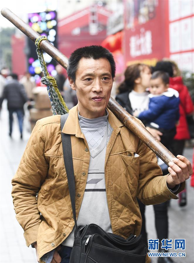 冉光輝在重慶朝天門大正商場(chǎng)附近等活(1月5日攝)。新華社記者王全超攝
