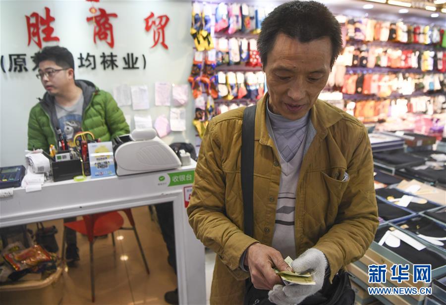 完成一筆搬運(yùn)業(yè)務(wù)后,冉光輝清點(diǎn)自己的勞務(wù)費(fèi)(1月5日攝)。新華社記者王全超攝