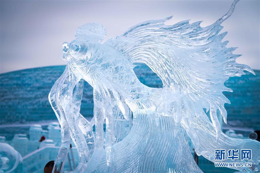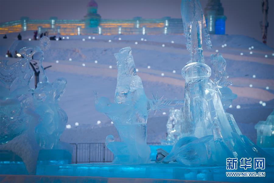 在哈爾濱冰雪大世界內(nèi)拍攝的冰雕作品(1月8日攝)。近日,在哈爾濱冰雪大世界園區(qū)內(nèi)舉行的各項冰雕賽事中,經(jīng)過來自世界各地的冰雕選手悉心雕琢,一塊塊冰變身為精美的藝術(shù)作品,數(shù)十座冰雕仿佛晶瑩剔透的出“冰”芙蓉。新華社記者王松攝