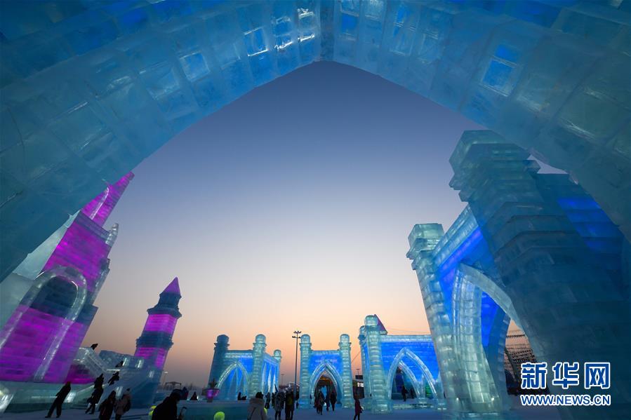 這是哈爾濱冰雪大世界園區(qū)中的景觀(1月5日攝)。每到冬季,天氣寒冷的冰城哈爾濱陸續(xù)迎來各類冰雕雪雕賽事。從2019年12月7日起,采冰工人們?nèi)找共杀\冰、冰景雪雕藝術(shù)家精心雕琢,這些“冰雪造夢者”們在嚴寒天氣中辛苦付出,讓一座“冰雪之城”在松花江畔拔地而起,向來自世界各地的游客展現(xiàn)浪漫絢麗的冰雪奇觀。新華社記者王松攝