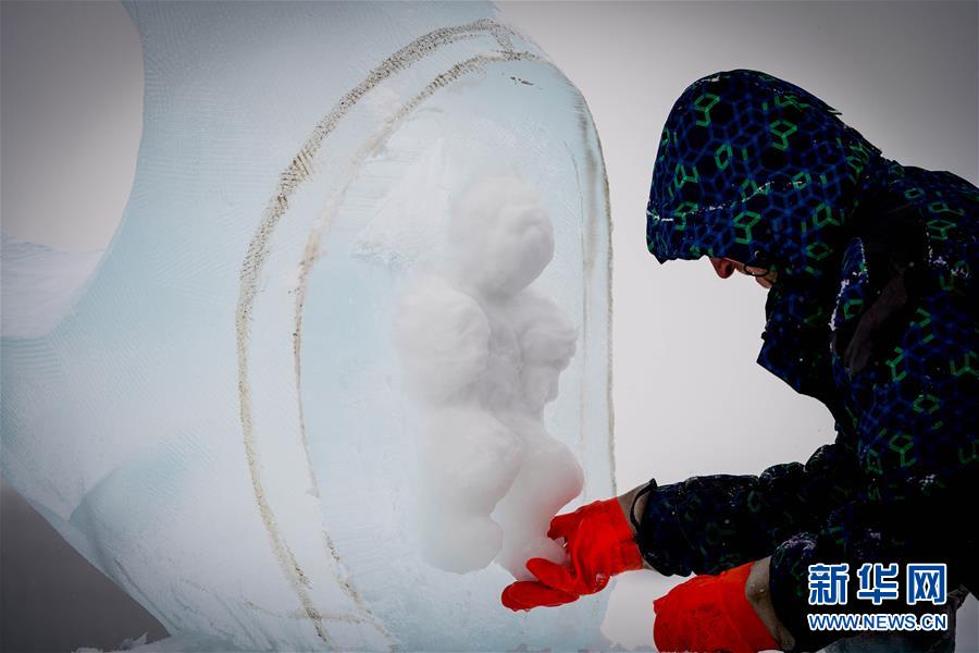 1月7日,參賽者在進行冰雕創(chuàng)作。新華社記者王松攝