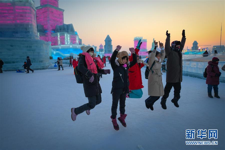 游客在哈爾濱冰雪大世界園區(qū)中游玩(1月5日攝)。新華社記者王松攝