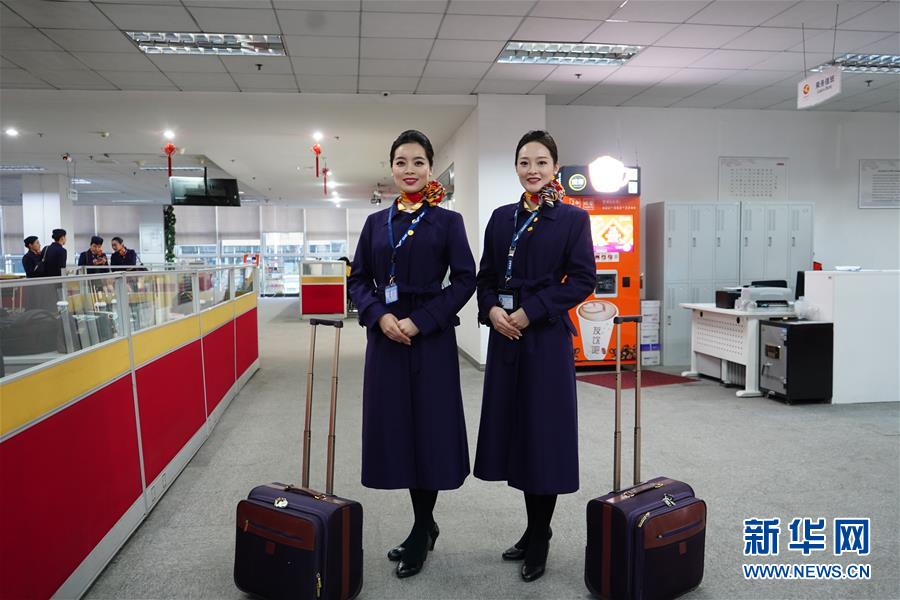 1月10日,天津航空乘務(wù)員付紅宇(左)和同事陶鑫鑫準(zhǔn)備前往機(jī)場。新華社記者王暉攝