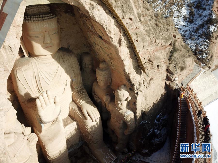 1月11日拍攝的天梯山石窟13號窟。位于甘肅省武威市的天梯山是祁連山東線的一條支脈,開鑿于巖壁上的天梯山石窟始建于東晉十六國時期的北涼,距今約有1600年歷史,是我國早期石窟藝術的杰出代表。新華社記者馬寧攝