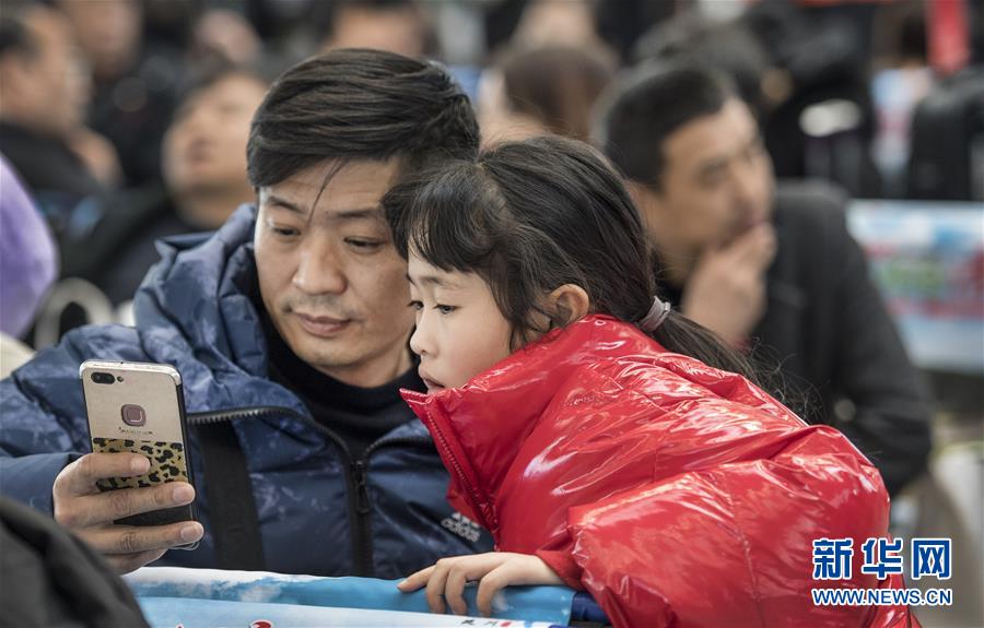 1月14日,一對(duì)父女在西安北站候車(chē)大廳用手機(jī)查看信息。路再遠(yuǎn)、再艱辛,也擋不住回家的腳步。在西安北站的每一個(gè)角落,處處充滿(mǎn)溫情和歸鄉(xiāng)的盼望。連日來(lái),西安北站日均發(fā)送旅客12.1萬(wàn)人次,一列列春運(yùn)的列車(chē),載著中國(guó)人的鄉(xiāng)愁,駛向遠(yuǎn)方。新華社記者陶明攝