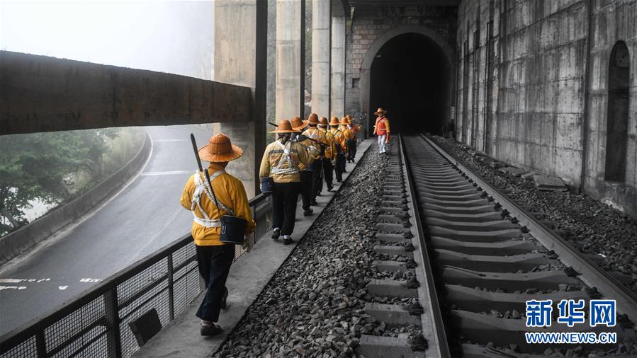 1月14日,百色工務(wù)段白水河橋隧工區(qū)班組成員開(kāi)展巡查工作。在中國(guó)鐵路南寧局集團(tuán)公司百色工務(wù)段白水河橋隧工區(qū),有一個(gè)由14名工人組成的班組。他們常年像“爬山虎”一樣行走攀爬在地形險(xiǎn)峻、云霧繚繞的高山上,負(fù)責(zé)南昆鐵路轄區(qū)路段的搜山掃石工作,清除一切可能危害鐵路行車(chē)安全的因素,保障旅客出行安全。新華社記者張愛(ài)林?jǐn)z