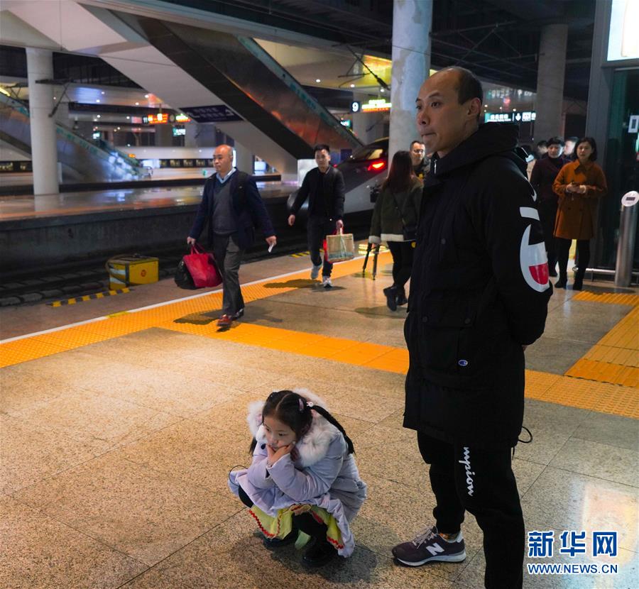 1月3日,由于卞菁值乘的動(dòng)車(chē)晚點(diǎn),等待時(shí)間較長(zhǎng)的朱梓芮(左)流露出稍許失望。新華社記者 胡晨歡 攝
