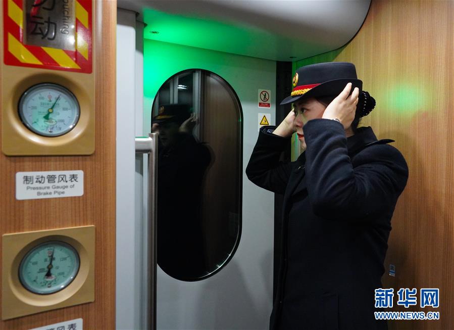 1月3日晚,車輛即將到達南昌西站,卞菁整理衣帽。新華社記者 張浩波 攝