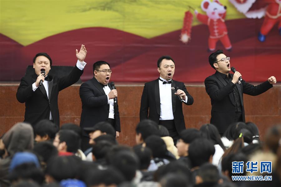 1月15日,中央歌劇院的歌唱家們?cè)谖繂栄莩鲋斜硌菽新曀闹爻?當(dāng)日,“我們的中國夢(mèng)”——文化進(jìn)萬家中央歌劇院文藝小分隊(duì)來到重慶市石柱土家族自治縣第一職業(yè)學(xué)校進(jìn)行慰問演出,為學(xué)校的三千多名師生帶來了一場(chǎng)精彩的音樂大餐。 新華社記者 王全超 攝