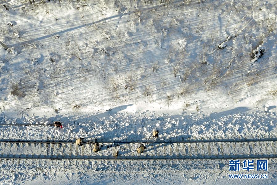 1月13日,白音庫倫綜合維修車間線路養(yǎng)護(hù)職工前往作業(yè)點(diǎn)。新華社記者劉磊攝