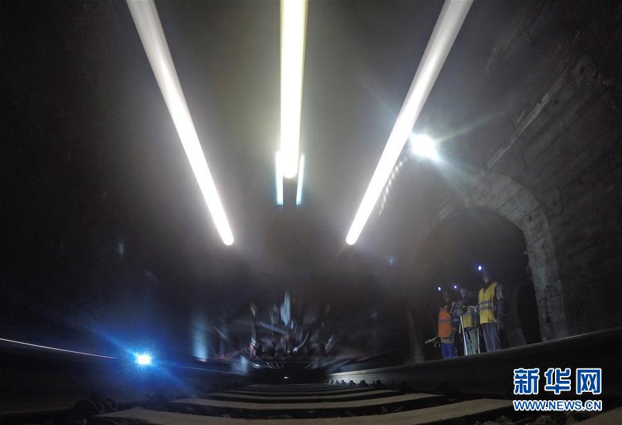 通化通信車間無線工區(qū)鐵路通信工人進(jìn)入全長(zhǎng)7088米的灣灣川隧道作業(yè)(1月10日攝)。2020年春運(yùn)1月10日拉開帷幕。新華社記者許暢攝