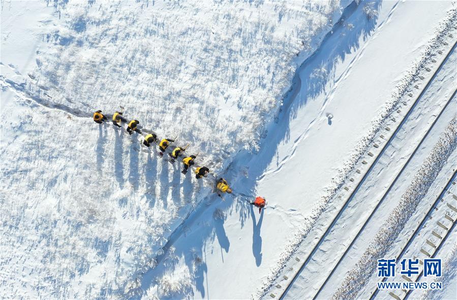 1月13日,白音庫(kù)倫綜合維修車(chē)間的職工來(lái)到作業(yè)點(diǎn)準(zhǔn)備工作(無(wú)人機(jī)照片)。新華社記者劉磊攝