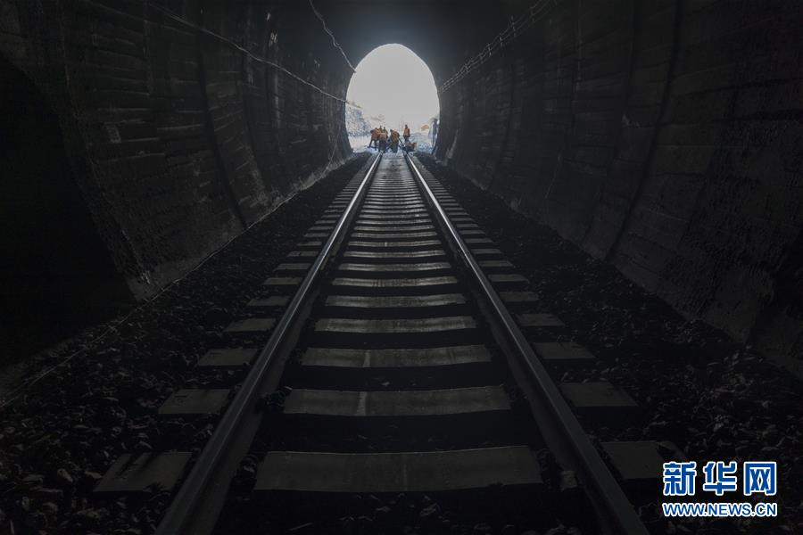 1月6日,在加格達(dá)奇工務(wù)段西羅奇嶺二號隧道,西羅奇維修工隊工作人員進(jìn)行維修作業(yè)。新華社記者才揚攝