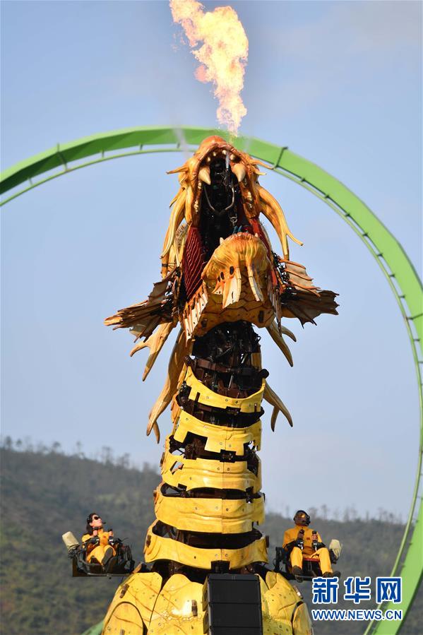 1月18日,大型機(jī)械裝置藝術(shù)品“龍馬精神”在珠海長隆海洋王國巡游展示。新華社記者 劉大偉 攝