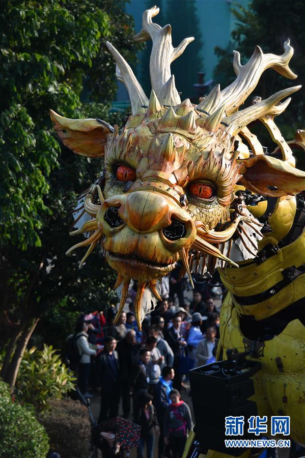 1月18日,大型機(jī)械裝置藝術(shù)品“龍馬精神”在珠海長(zhǎng)隆海洋王國(guó)巡游展示。新華社記者 劉大偉 攝