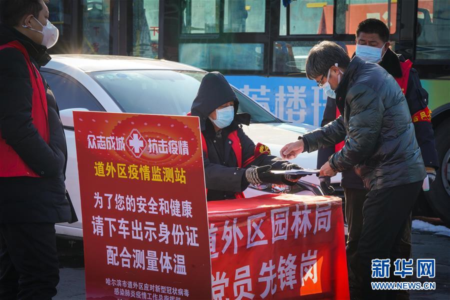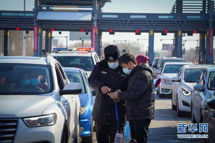 2月24日,工作人員在哈同高速公路哈爾濱收費(fèi)站為車(chē)輛人員登記。 新華社記者 王松 攝